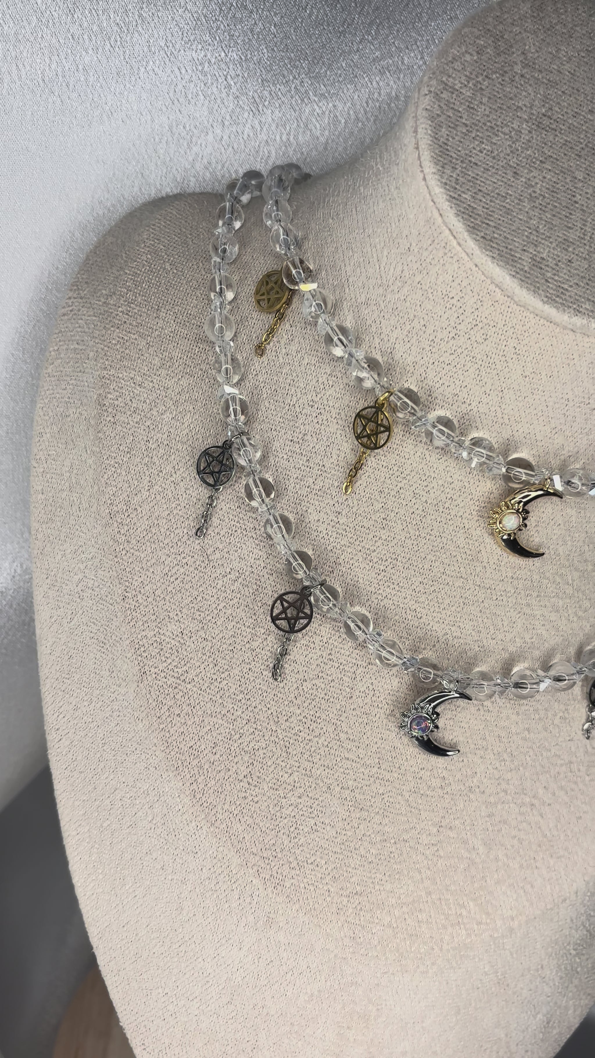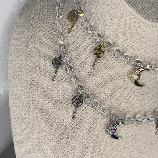 Kleine Pentakel-Charms ergänzen die Energie des Schmuckstücks und stehen für Schutz, Harmonie und Verbindung zu den Elementen.