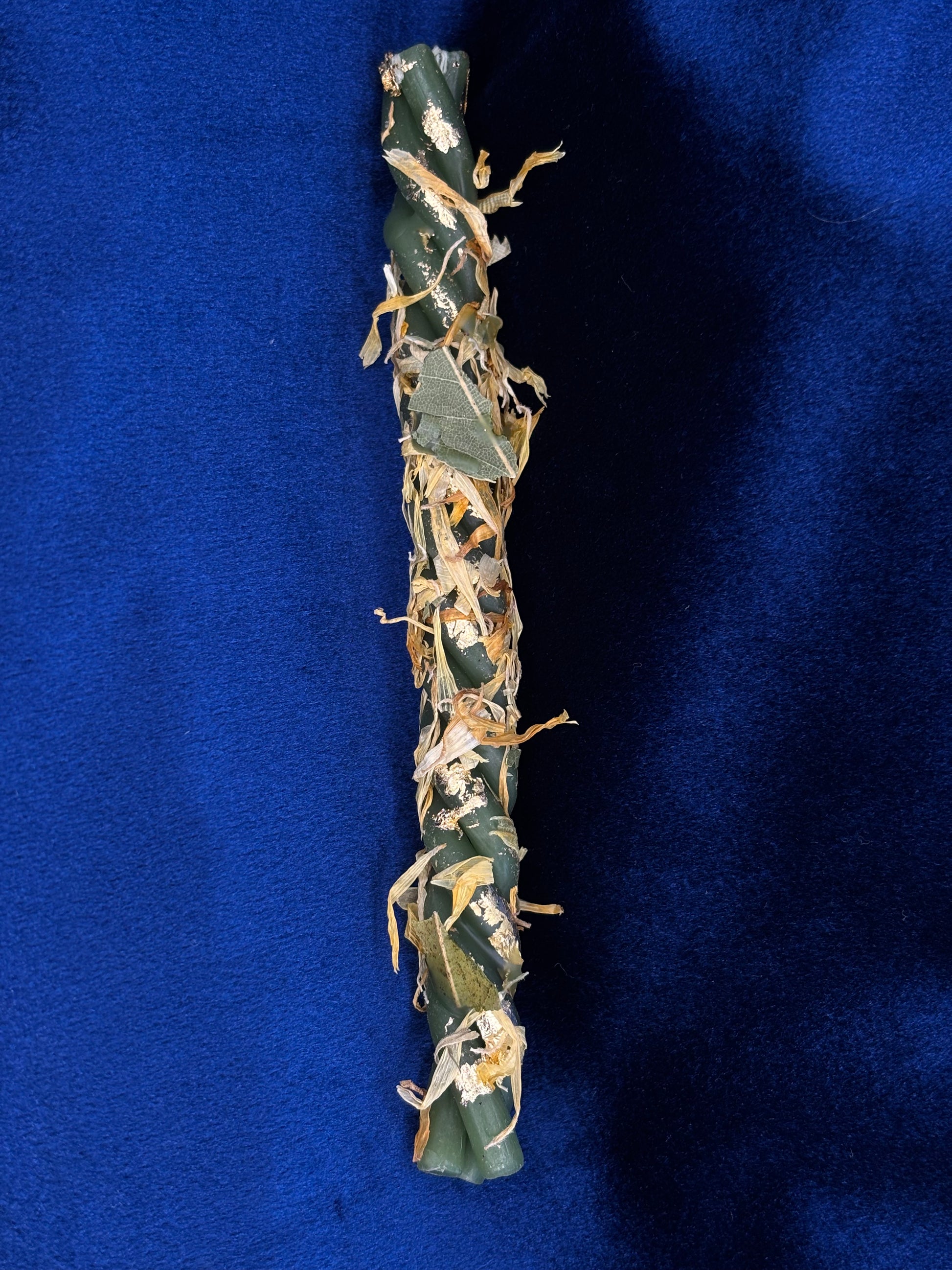 Свеча состоит из трех переплетенных между собой настоящих свечей из пчелиного воска. Адаптировано и обсуждено мной с выбранными травами для ваших нужд и заряжено энергией полнолуния.