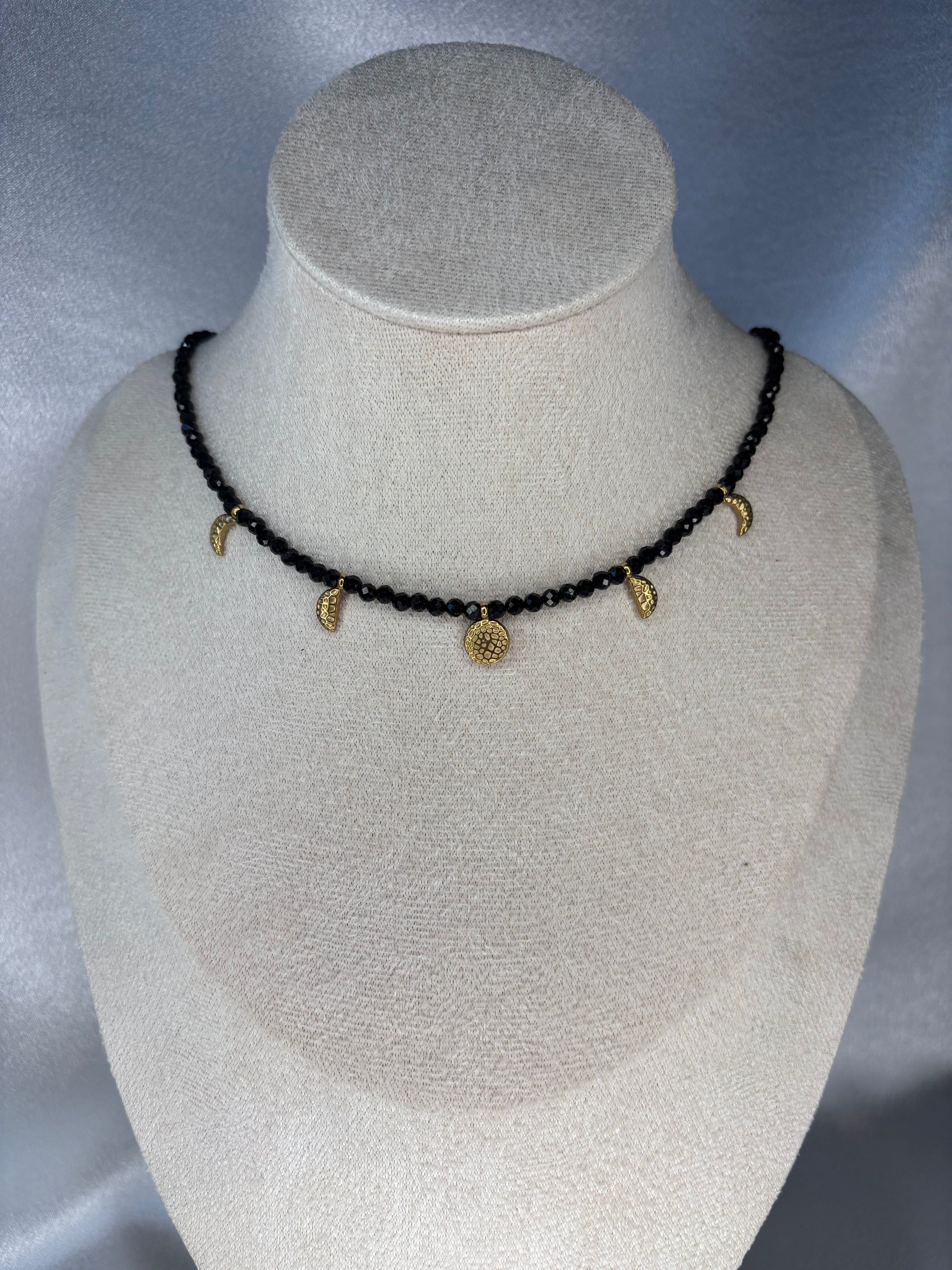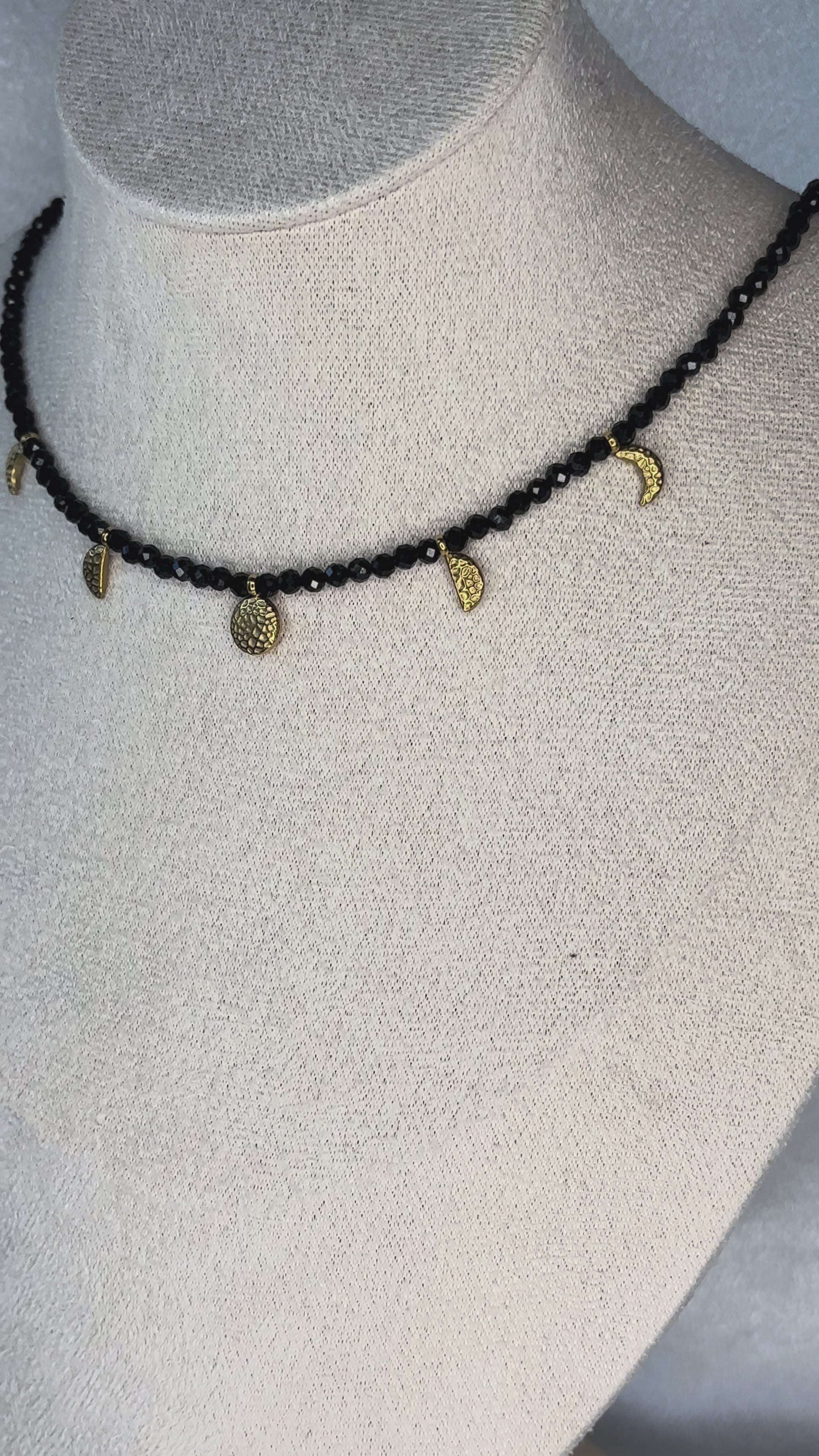Gefertigt aus facettiertem schwarzem Turmalin, dem Stein des Schutzes und der Erdung, vereint diese Kette Eleganz und spirituelle Tiefe.