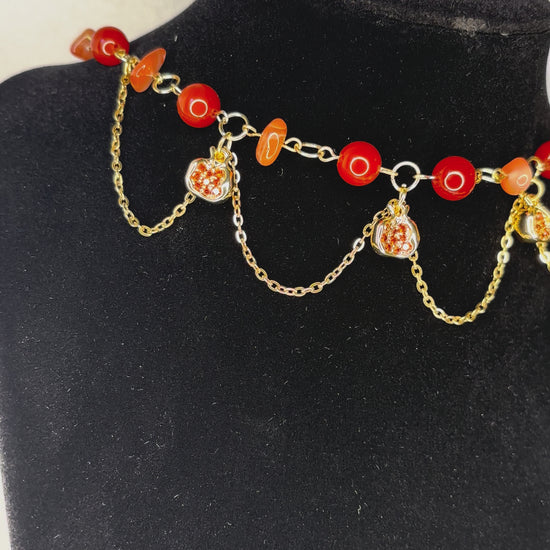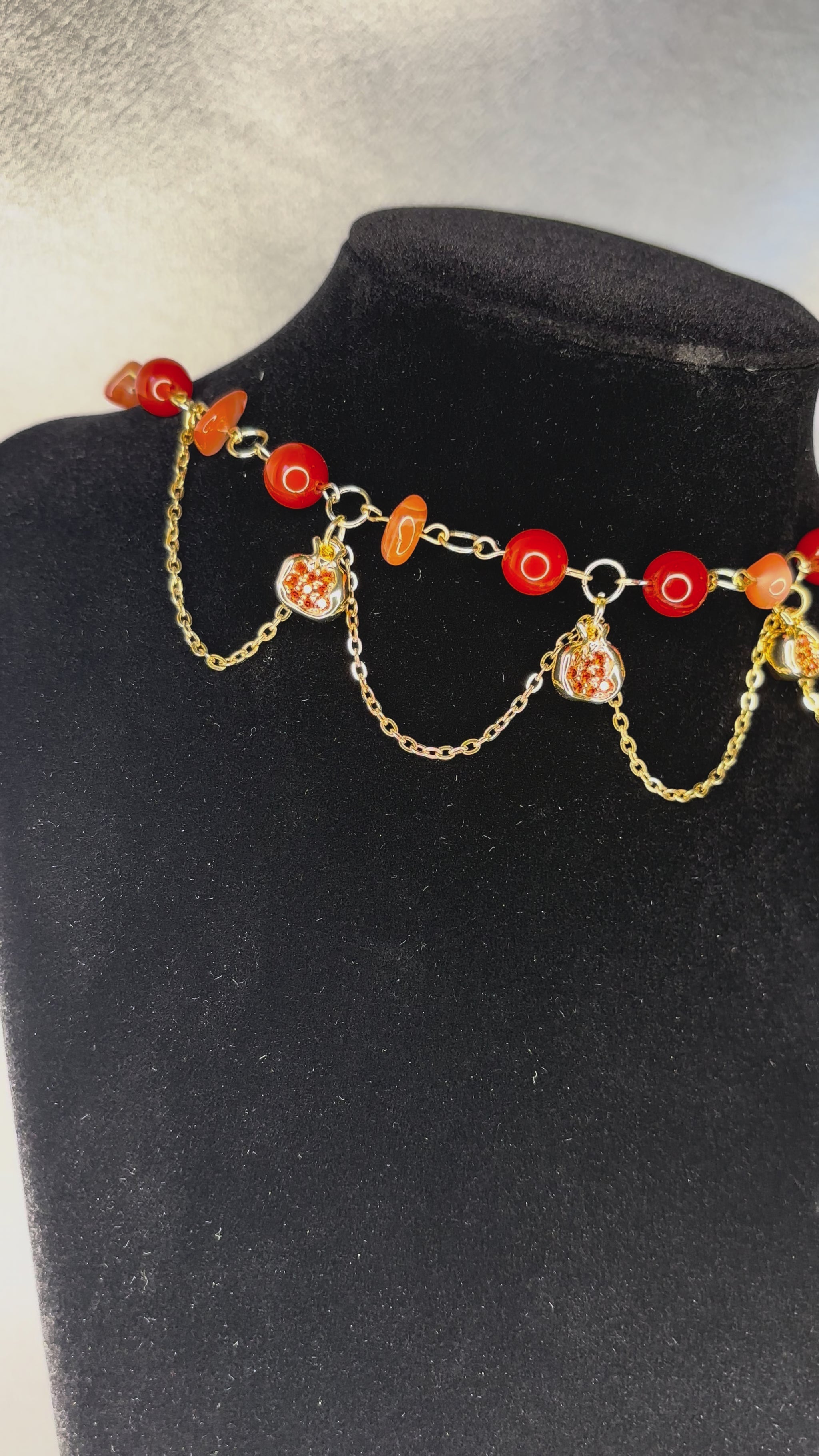 Gefertigt aus leuchtenden Karneol-Steinen, die für Lebensfreude, Mut und weibliche Kraft stehen, verbindet diese Kette Leidenschaft mit Eleganz.