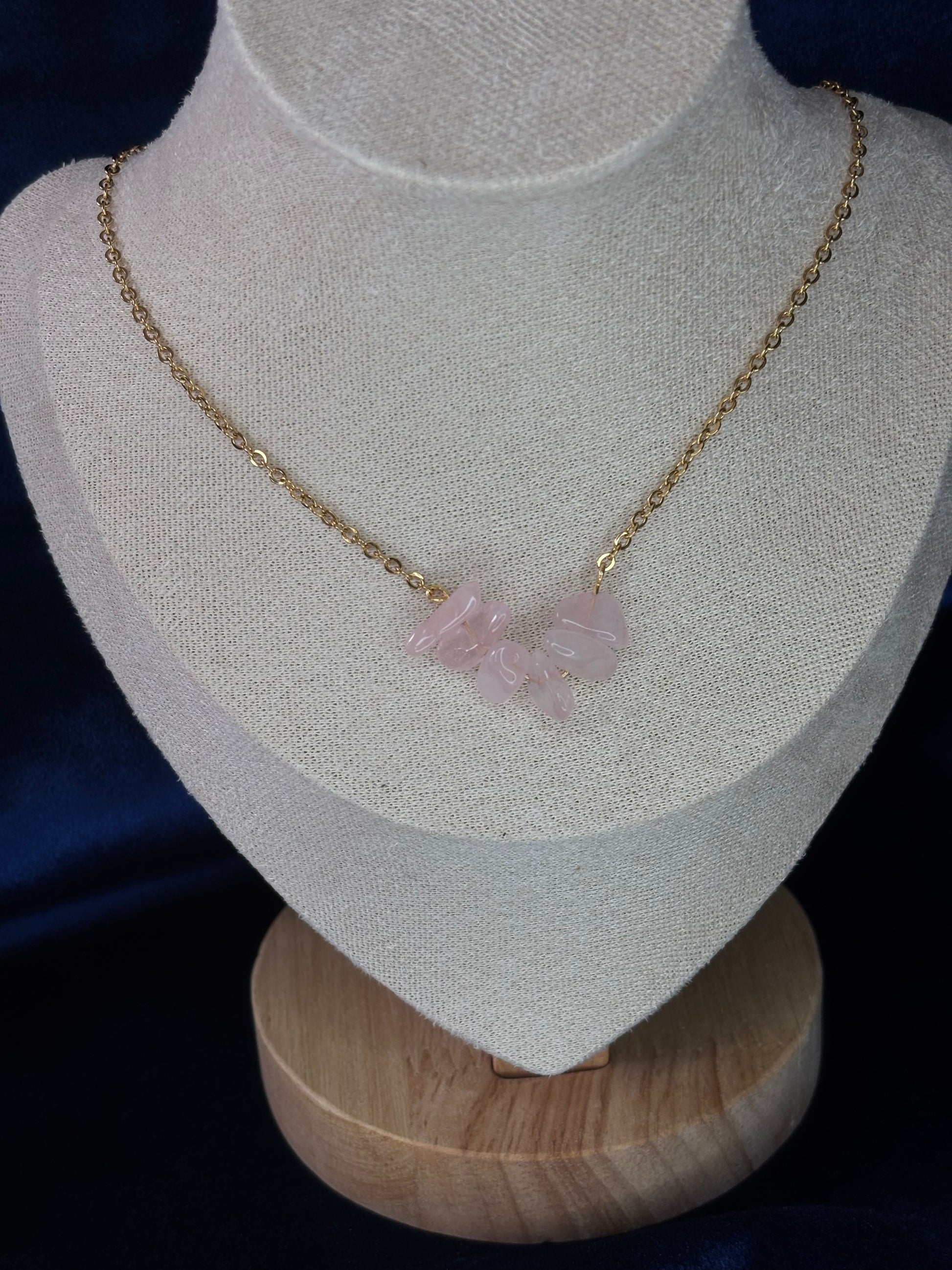 Rosenquarz Splitter Edelstahl Kette 14k vergoldet
