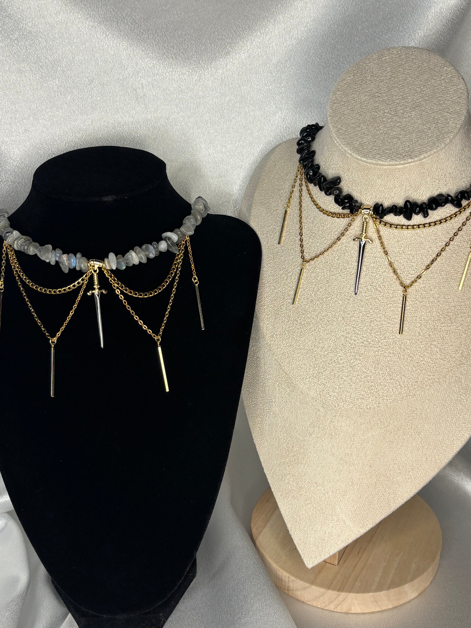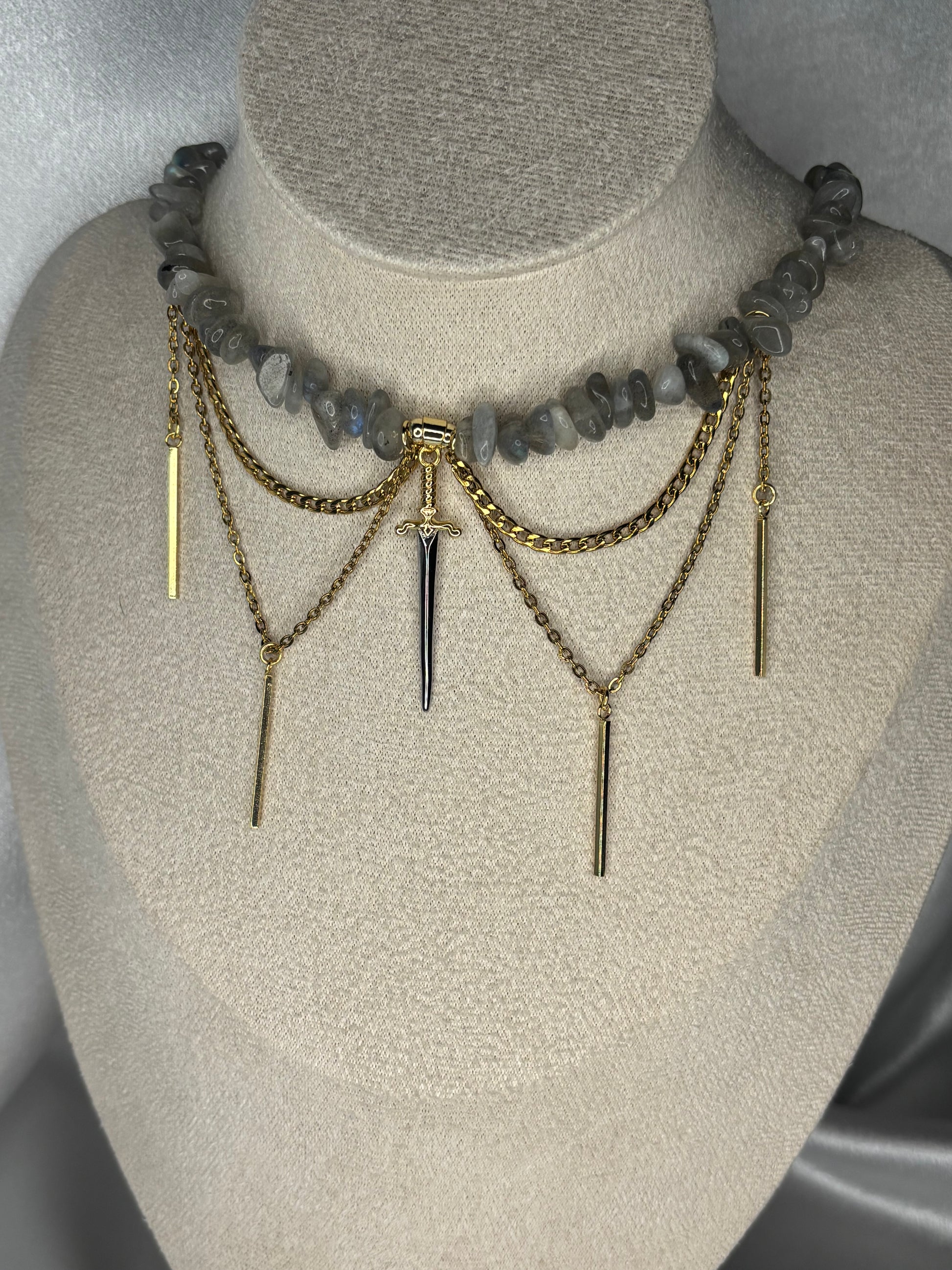 Die Kette ist wahlweise mit Labradorit oder Obsidian erhältlich: